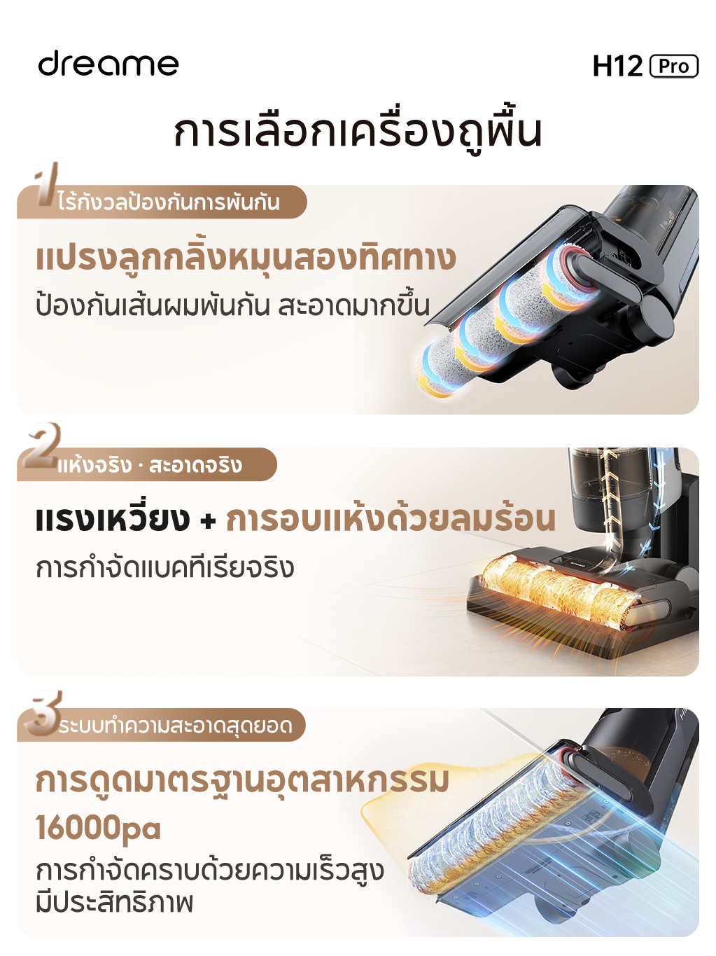 | แปรงถูพื้นและเป่าแห้งด้วยลมร้อนได้เอง ใน mode Drying |